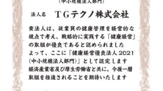 未分類 [経営・事業] 健康経営優良法人2021に認定されました この度、当社は「健康経営優良法人2021(中小規模法人部門)」に認定されました。 本制度は地域の健康課題に即した取組みや日本健康会議が進める健康増進の取組みをもとに、 特に優良な健康経営を実践している法人を顕彰する制度です。 今回で2年連続... 2021.03.17 未分類